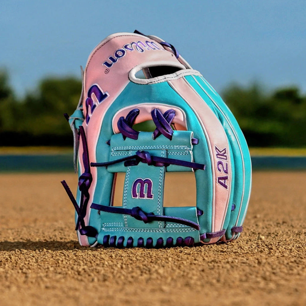 Turn quick double plays up the middle or corral hard hit balls down the third base line with the Winter 2025 A2K® 1786, Wilson’s iconic infield glove pattern that leverages a shallow pocket design, H-Web construction and 11.5” reach for total control and fast transfers. Expert glove craftsmen in Japan assemble the A2K® 1786 with flawless Pink and Teal Pro Stock® Select leather for a warm appearance and elite performance. Double Palm Construction – an extra layer of leather between the palm shell and liner – forms to your hand during the break-in process and holds its shape over time.