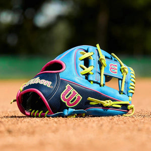 Turn double plays up the middle or handle hot shots down the third base line with the Spring 2026 A2000® 1786, Wilson’s iconic 11.5” infield baseball glove pattern with a shallow pocket design and H-Web Construction to turn quick transfers. The glove’s Sky Blue Pro Stock® leather palm offers lasting comfort and performance, while Navy Blue SuperSkin™ along the thumb, wrist and pinky panels shed weight and repel moisture. Optic Yellow & Pink accents, along with new Woven Bold Logos, offer extra flash to match your performance.