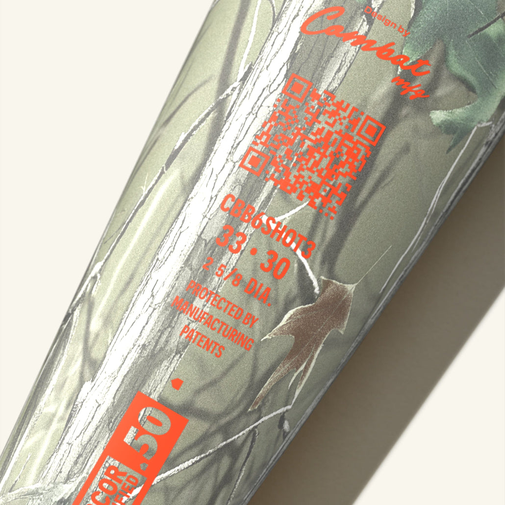 The Combat Outdoor Shooters Shoot SPEC-A1 BBCOR Bat is here to be your trusted ally to seize the game's biggest moment. With a camo backdrop and hunter-orange design accents, this bat is a representation of the balance of intensity and serenity that the Outdoor life offers.