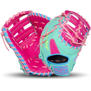 The Rawlings Heart of the Hide ColorSync 10 Berry Mint 13-Inch First Base Mitt brings bold color and dependable performance to one of the most important spots on the field. Featuring a vibrant pink palm paired with a bright teal shell, this mitt delivers a loud, confident look that stands out every time you’re on the bag.