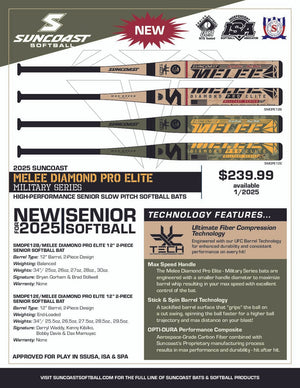 2025 Suncoast Melee Diamond Pro Elite 12" Military Series End-Loaded Senior Slowpitch Bat: SMDPE12E