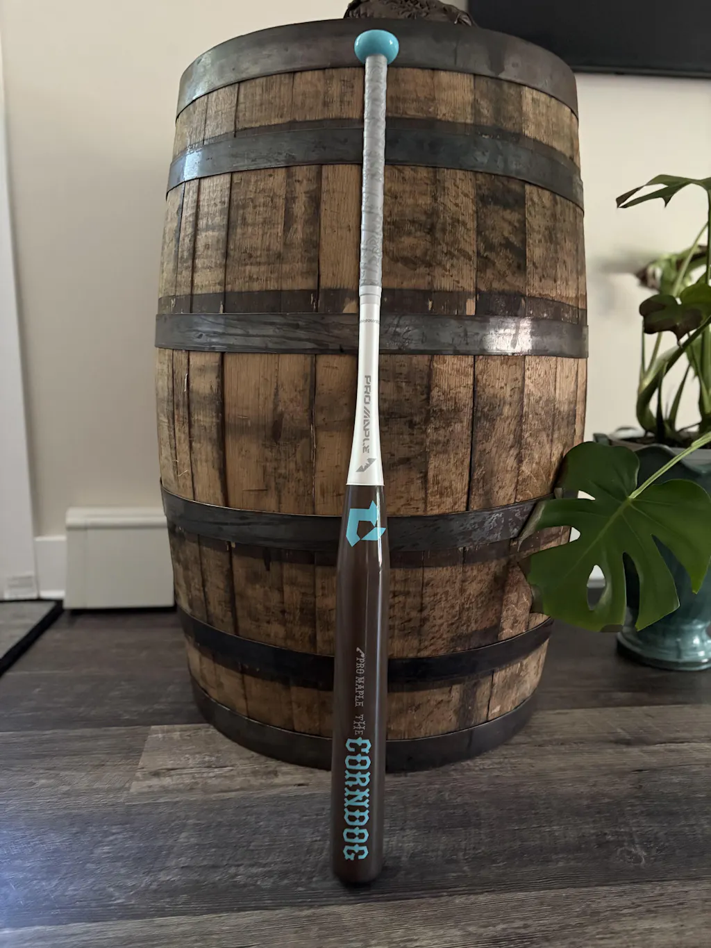 Take pitches to the woodshed with the Corndog™ Wood Composite Slowpitch Softball Bat, DeMarini’s solution to wood-only slowpitch leagues with a durable Pro Maple Wood Composite Barrel. The Corndog’s Gray & Sky Blue barrel with an endloaded swing weight and White Paraflex Composite Handle help pack a punch year-round. The Corndog Wood Composite includes a 90-day warranty.