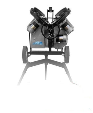 The Junior Hack Attack Baseball Pitching Machine is the major-league quality training tool designed to develop serious young players. This exclusive three-wheel design changes the breaking pitch plane by simply adjusting wheel speed dials. (All two-wheel units require time consuming awkward throwing head adjustments to change from fastballs to curveballs or right to left handed breaking pitches.) The Junior Hack Attack’s elevation adjustment handle will raise or lower the pitch. With a simple turn, you can even move the pitch up or down within the strike zone between pitches.