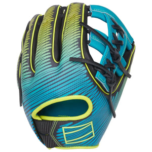 Shine under the lights with this exclusive Rawlings REV1X glove — a bold blend of futuristic flair and pro-level performance. With a high-voltage design that flashes teal, neon yellow, and black, this glove is built to electrify every inning.